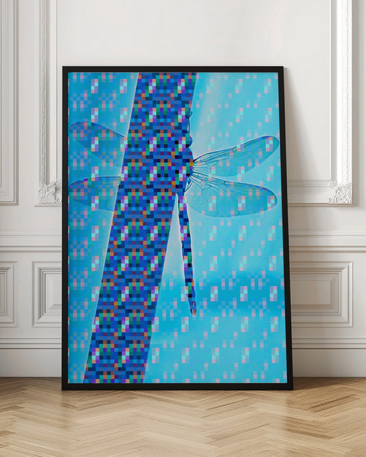 Dragonfly Silhouette with Vibrant Pixel Patterns - Poster / Art Print