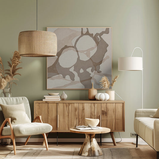 Placera större statement-pieces i ett centralt läge och fyll sedan ut med mindre komplementära prints för att skapa visuell balans. Boho-stilen uppmuntrar till experimentation - våga blanda olika konstnärliga uttryck, från fotografiska landskapsbilder till illustrativa botaniska motiv.