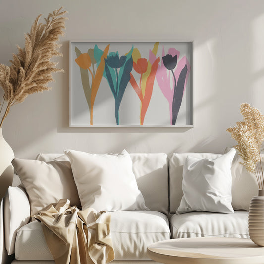 Colorful Flowers with Green Leaves - Poster / Art Print