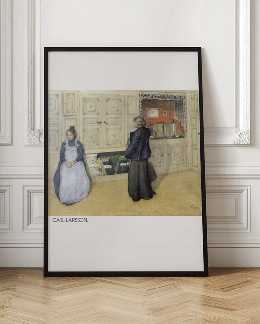 I denna musikaliska interiör kombinerar Larsson flera av sina styrkor – rumsgestaltning, personporträtt och skildring av kulturlivet i hemmet. Pianot, en symbol för både bildning och hemtrevnad, blir ett centralt element i kompositionen. Scenen fångar både musikens närvaro och det sociala samspelet, viktiga aspekter av det bildade borgerliga hemlivet som Larsson så mästerligt dokumenterade och idealiserade.
