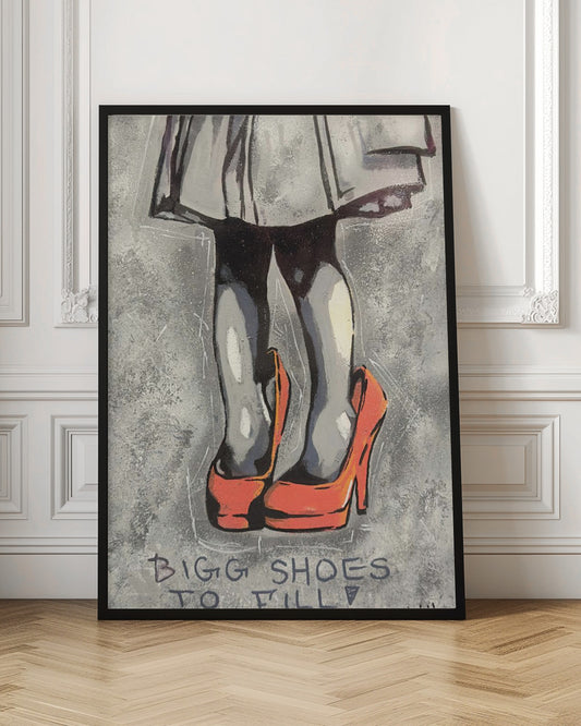 Street Scene with Elegant Woman in Red Dress - Poster / Art Print