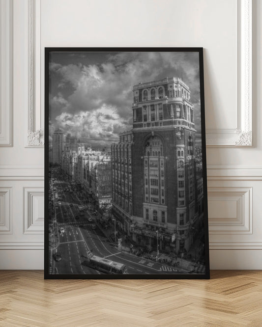 Vår posterkollektion fångar denna mångfacetterade huvudstad genom olika konstnärliga uttryck. Det speciella kastiljanska ljuset, särskilt framträdande under "la hora dorada" (den gyllene timmen), skapar extraordinära visuella upplevelser som genomsyrar våra verk.