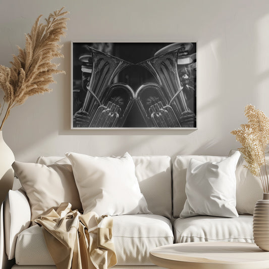 Vår kollektion omfattar allt från detaljrika bilder av klassiska instrument till abstrakta tolkningar av musikaliska teman. Här finns dramatiska närbilder av blanka mässingsinstrument, eleganta visualiseringar av stråkinstrumentens tidlösa kurvor och dynamiska illustrationer av moderna instrument.