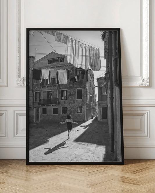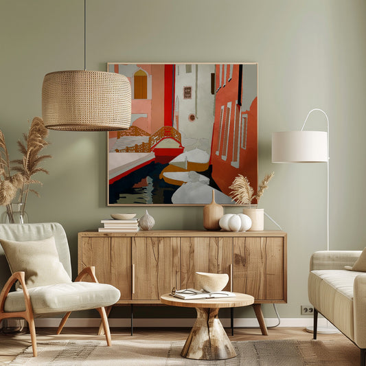 Den venetianska vardagen präglad av gondoler, vaporetti och trånga gränder skapar en distinkt urban rytm som skiljer sig markant från moderna metropoler. Denna tidlösa atmosfär genomsyrar våra konstnärliga tolkningar och erbjuder betraktaren en glimpt av "La Serenissima" - den mest serena republiken.