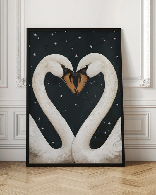 Twilight Swans Navy Sky - Poster / Art Print
