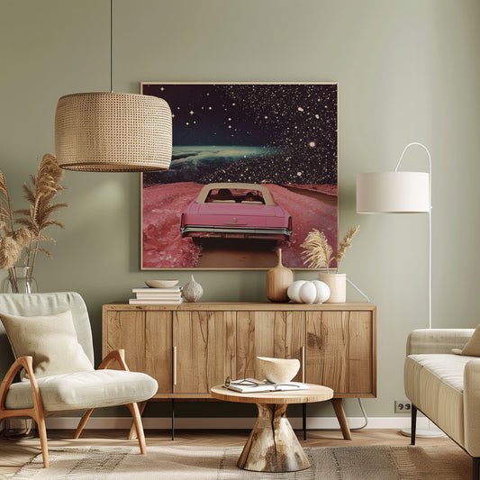 Pink Cruise in Space Collage Art - Poster / Art Print