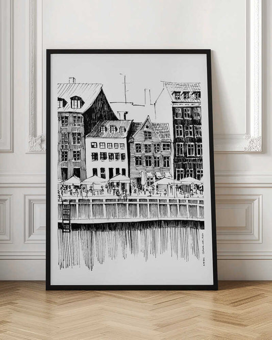 Nyhavn Canal: Copenhagen, Denmark City Drawing - Poster / Art Print