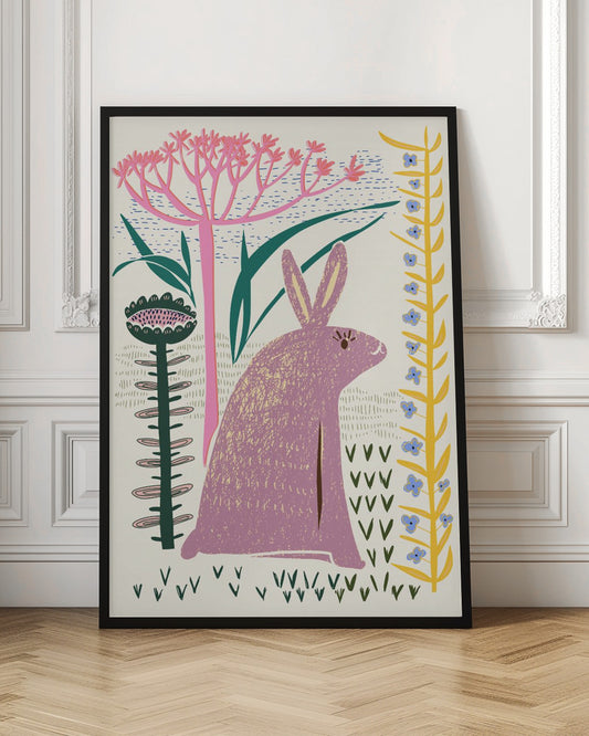 Block print lilac bunny - Poster / Art Print