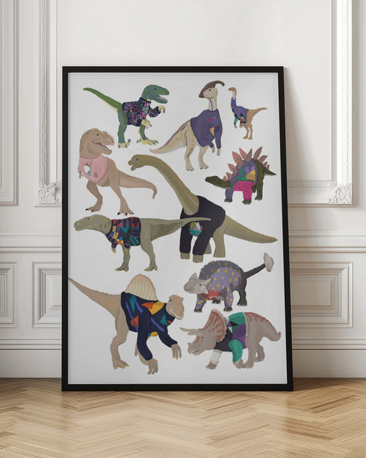 Dinosaurs In 80s Jumpers - Poster / Art Print