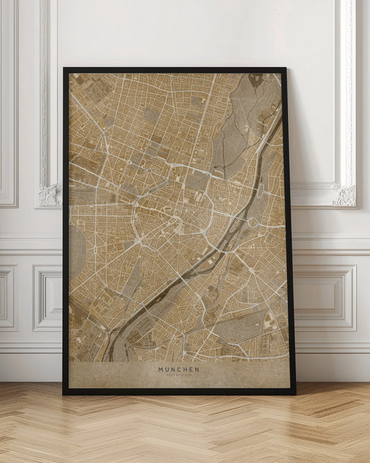 Sepia vintage map of Munich inner city in Germany - Poster / Art Print