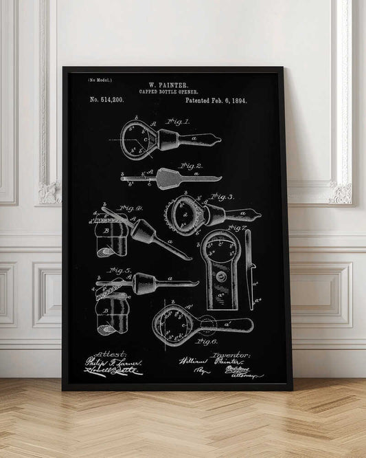 Capped Bottle Opener Patent 1894 - Poster / Art Print