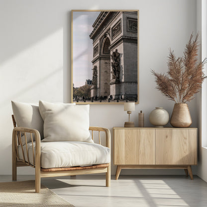 Capture the heart of Paris with this captivating art print of the Arc de Triomphe, created by Pictufy Studio III. The piece presents a unique, stylized interpretation of the iconic monument, where deep, vibrant colors and sharp lines highlight its majestic architecture. It's a perfect detail to infuse your home with a sense of Parisian elegance and a constant reminder of one of the world's most famous landmarks.