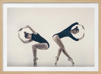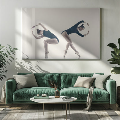 In this enchanting poster, "Ballet dancers II", artist Patrik Minar has captured the elegance of ballet in a unique way. The piece, depicting two graceful dancers, combines geometric forms and graphic precision with an almost ethereal sense of balance and movement. Its high contrast and minimalist design create a dramatic and timeless aesthetic that perfectly suits the modern home.