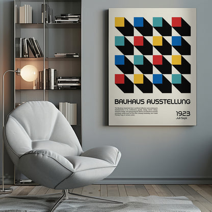 This striking Bauhaus Exhibition poster by Retrodrome perfectly captures the essence of 1920s modernism. With its bold geometric design, vibrant primary colors, and precise typography, it’s a vibrant tribute to the iconic art school. A timeless vintage print that adds color and character to any space.