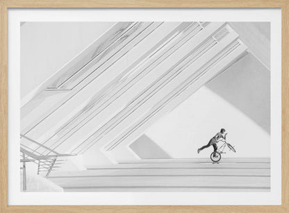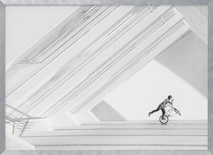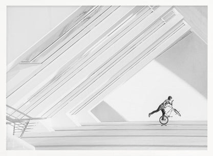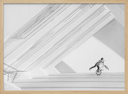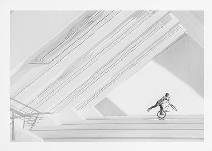 Discover dynamic bicycle art by Piet Haaksma that captures the thrill of a breathtaking stunt. This black and white artwork celebrates the adrenaline-fueled moments of cycling sports, with bold lines and a striking composition that highlights the rider's skill. Perfect for adding a sense of motion and energy to your home or office.