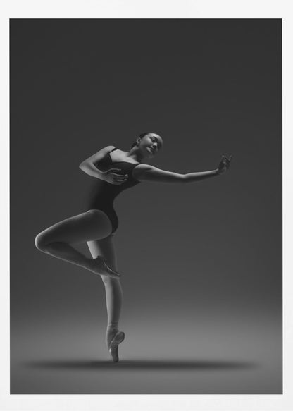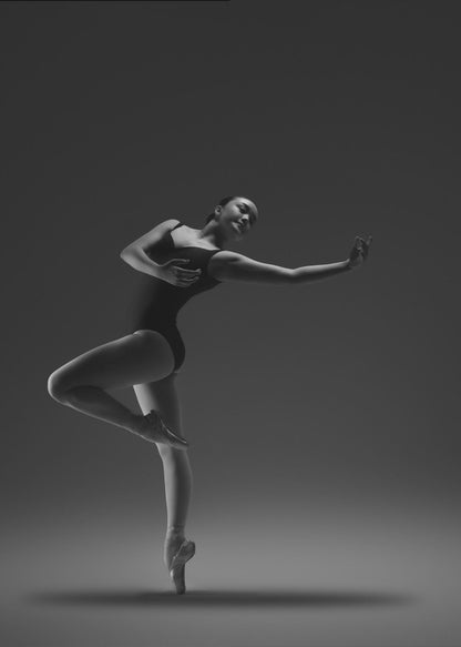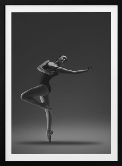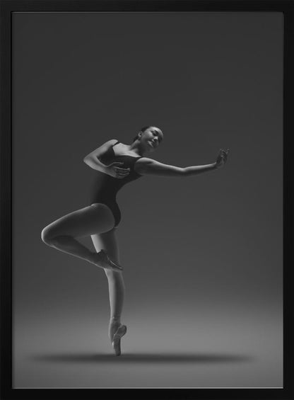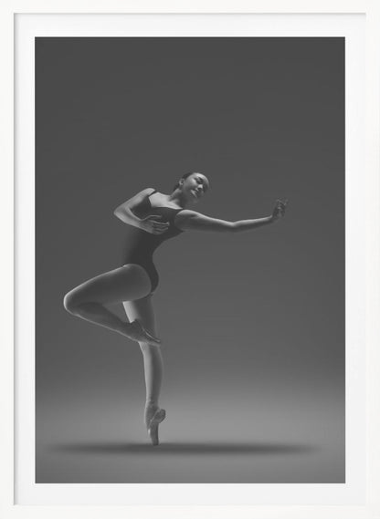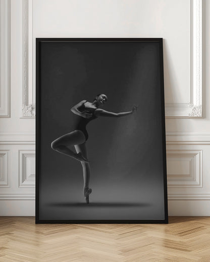 "Dansar 6" by Rob Li is a captivating poster celebrating the elegance of ballet and the dancer's precision. This monochrome image beautifully captures a ballerina in perfect balance, highlighting the grace of movement and the strength of the human form. A timeless portrait of perfection.
