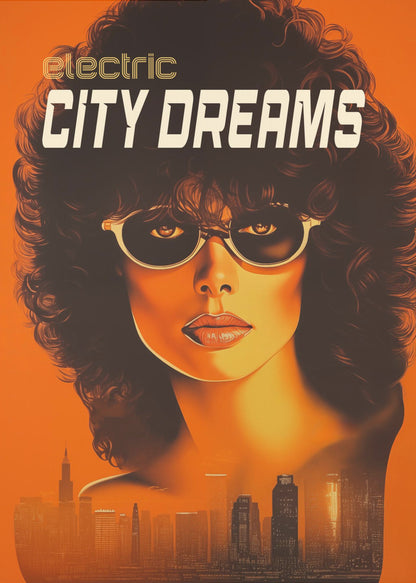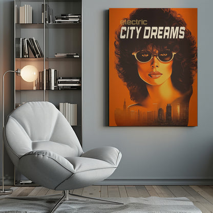 Experience the captivating atmosphere of "Electric City Dreams," created by Andreas Magnusson. This stunning poster captures the essence of a neon-lit 80s, featuring a mysterious woman against a backdrop of the city's pulsating lights. It’s a perfect blend of retro charm and film-inspired aesthetics, reminiscent of classic vintage movie posters. A timeless art print that adds character to any space.