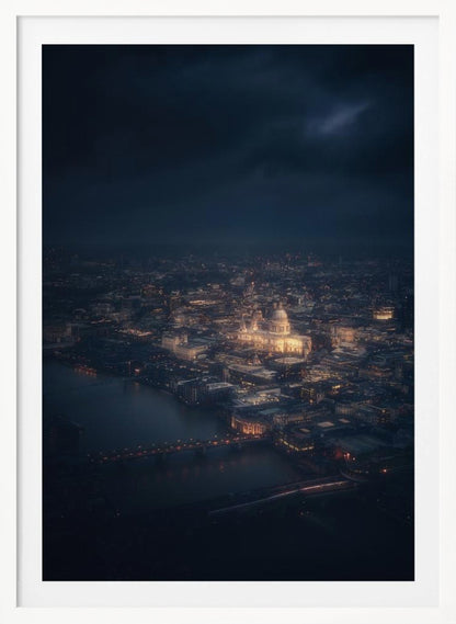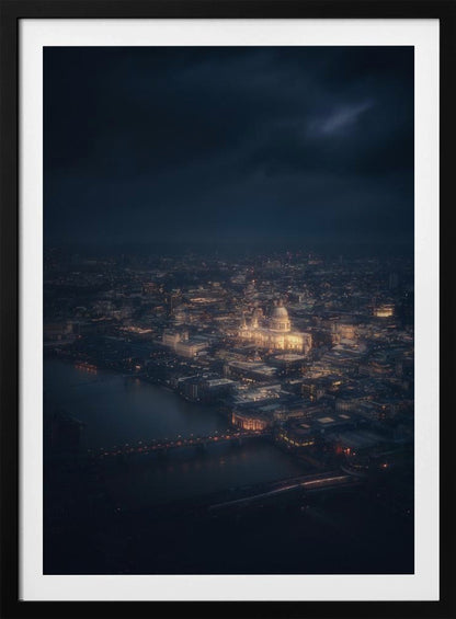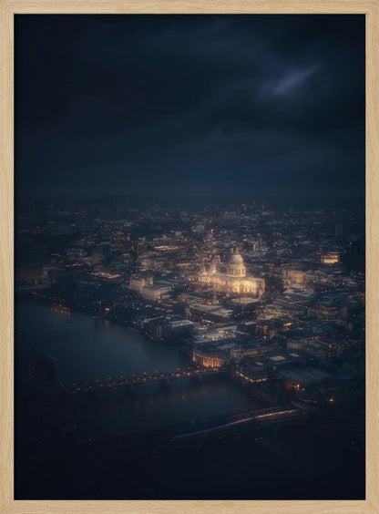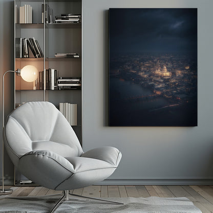 This captivating poster, created by artist David George, transports you to a dark and mysterious London. Experience St Paul's Cathedral as an imposing, gothic silhouette against a rainy, neon-lit cityscape. The cyberpunk-inspired aesthetic creates a dramatic and futuristic atmosphere, where the rain reflects the light and amplifies the city's nocturnal pulse. A perfect blend of ancient architecture and modern noir.