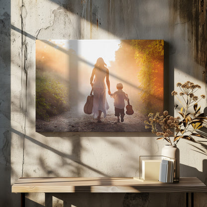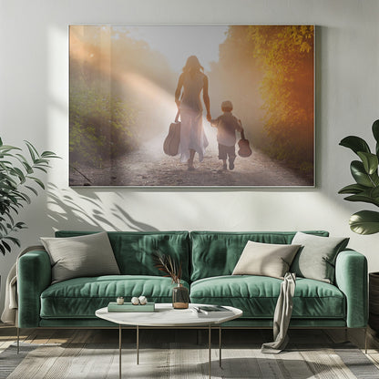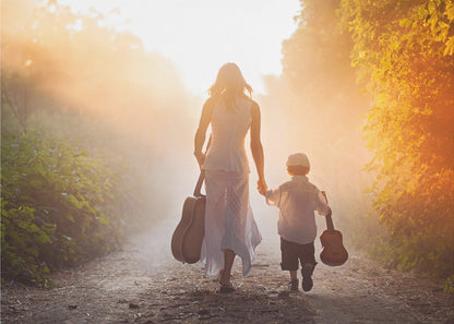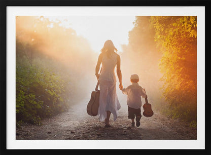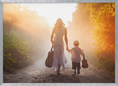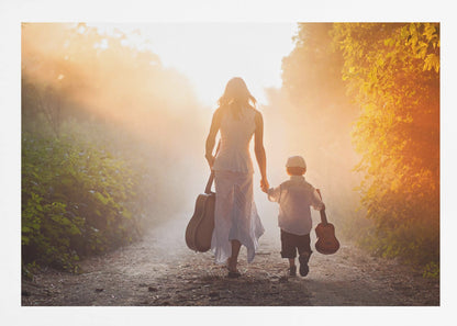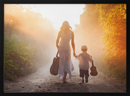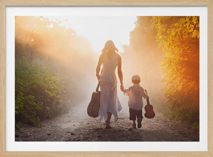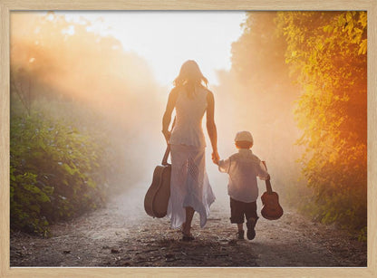 This enchanting "Forest musicians" poster by Tatyana Tomsickova captures a magical moment deep within a misty forest. The image conveys a sense of calm and harmony, where two figures play music together, surrounded by leaves and a dreamy atmosphere. It's a beautiful tribute to friendship, love, and the soothing power of nature, perfect for creating an inspiring mood in your home.