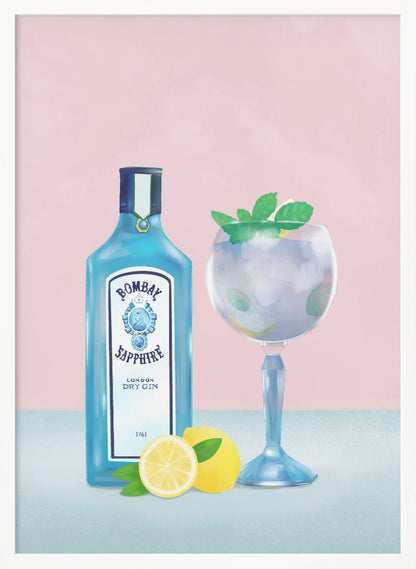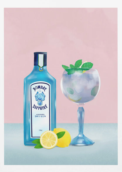 Experience the artistic charm of Petra Lizde's "Gin Cocktail" poster, a vibrant and modern illustration that captures the beauty of the moment. With its fresh tones of blue, pink, and citrus fruits, it evokes a refreshing feeling reminiscent of summer and festive occasions.