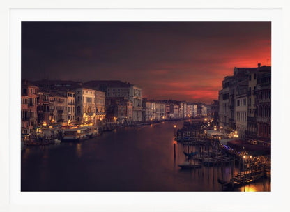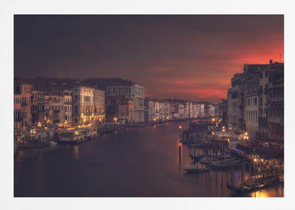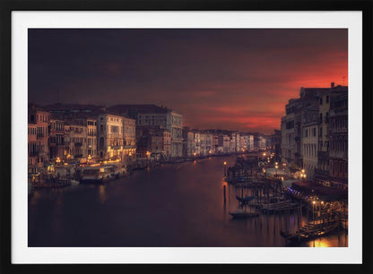 Jose Garcia's captivating poster "Gran canal" captures the timeless beauty of Venice at dusk. This masterpiece of long exposure transforms the iconic canal into a dreamy scene where historic architecture and gondolas glimmer in the last glow of sunset.