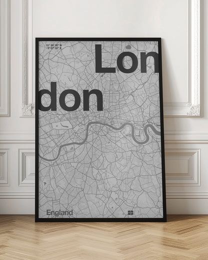 Discover the unique interpretation of London by artist Florent Bodart, presented as a stylish poster or art print. This captivating work captures the essence of the city through a modern, map-inspired design in black and white. With its detailed buildings, textures, and typographical elements, this piece becomes a modern and urban detail on your wall.