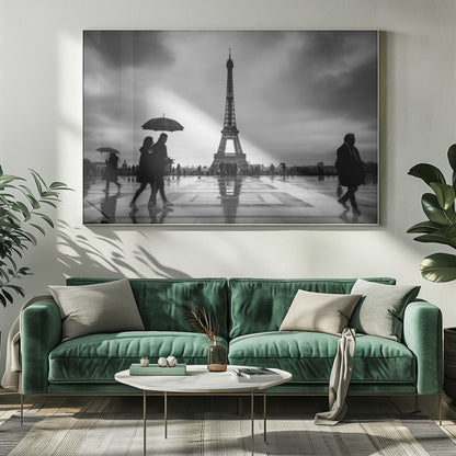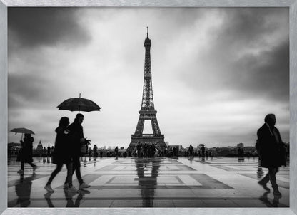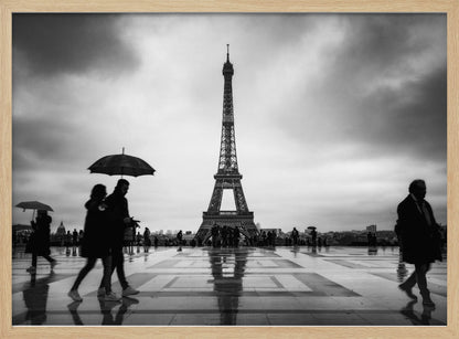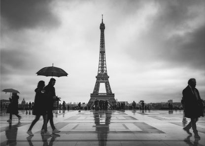 Photographer Andrei Ionut Dascalu captures the iconic Eiffel Tower in Paris within a magical black and white motif. This image, radiating strong contrast and drama, depicts the tower during a rainy urban scenario, with umbrellas reflecting on the wet street. A true masterpiece for lovers of urban architecture and French romance.
