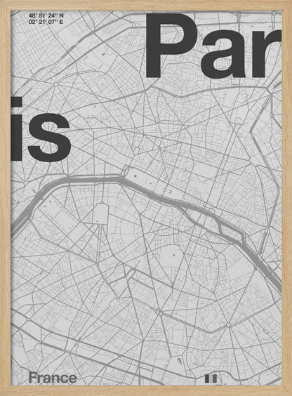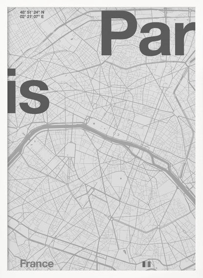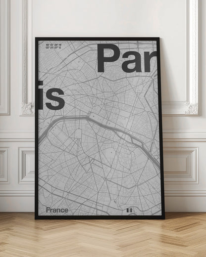 Discover the iconic charm of Florent Bodart's "Paris" poster, an artwork that captures the city's timeless essence in an elegant monochrome style. This black and white art print features a stylized map of Paris, with the city's name as a central design element. A perfect tribute to the French capital, exuding both sophistication and inspiration for travel enthusiasts.