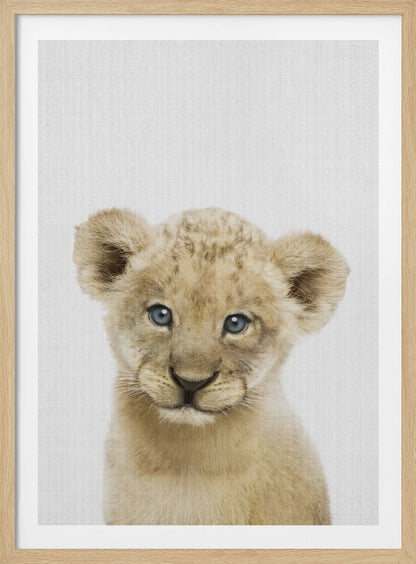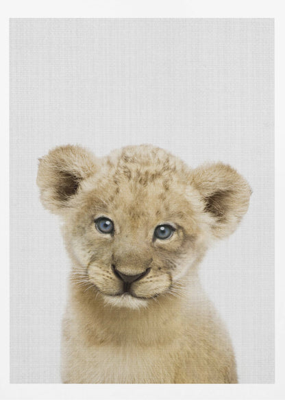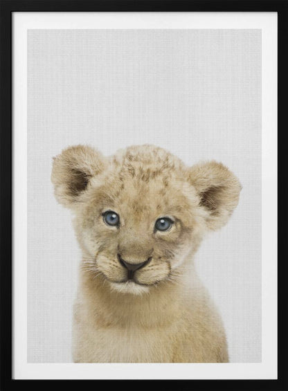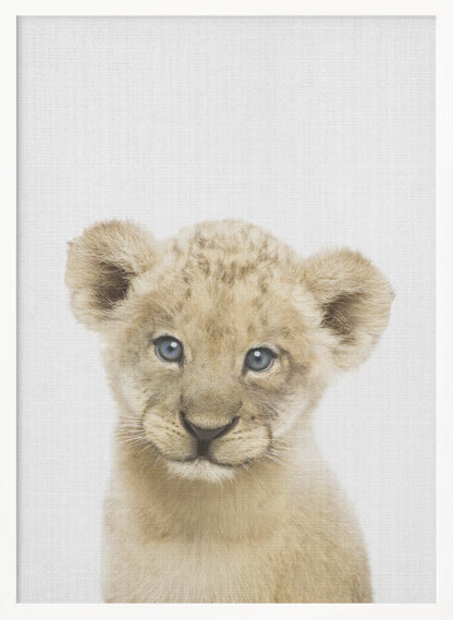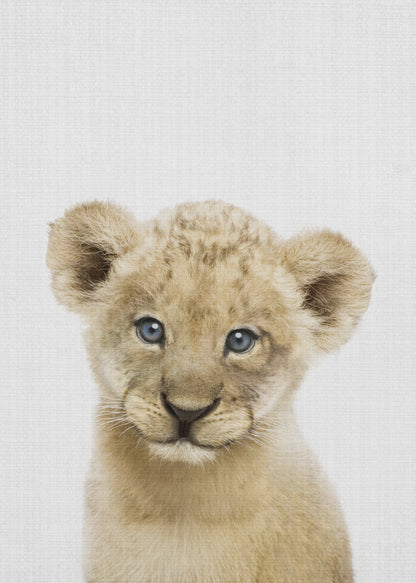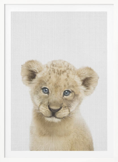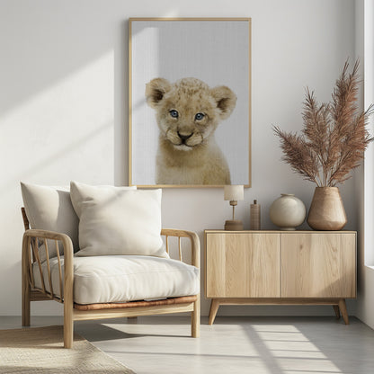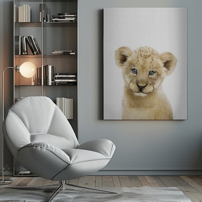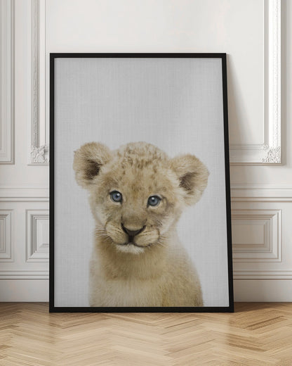 Discover the charm of this adorable "Peekaboo Baby Lion" poster by Lola Peacock, capturing a playful lion cub with irresistible curiosity. Its mischievous expression and soft colors create a warm and inviting feel. Perfect for a child's room or for anyone who loves cute animal motifs, this art print brings joy and vibrancy to any space with its simple, clean background.
