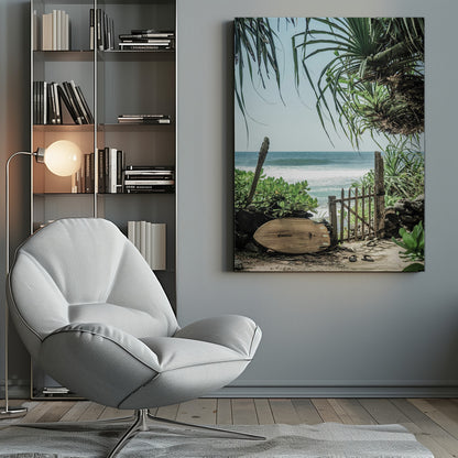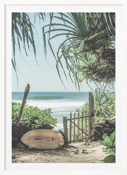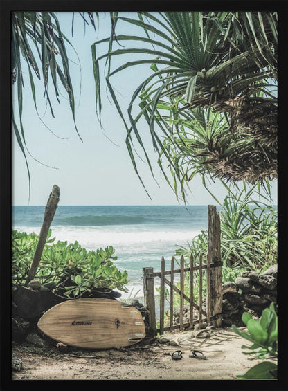 This captivating poster, Secret Beach, photographed by Shot by Clint, captures the serene beauty of an untouched, exotic shore. With its harmonious colors and tranquil horizon, it evokes a sense of peace and relaxation. A perfect addition to bring the peaceful light of summer and a tropical ambiance into your home.