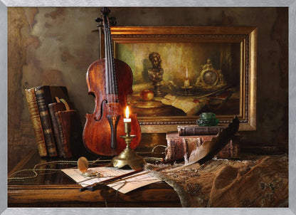 Still life with violin and painting - Poster / Art Print