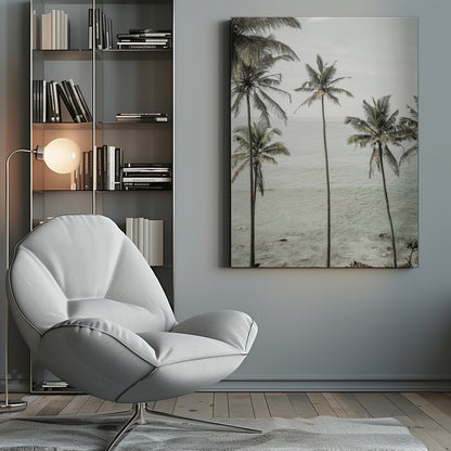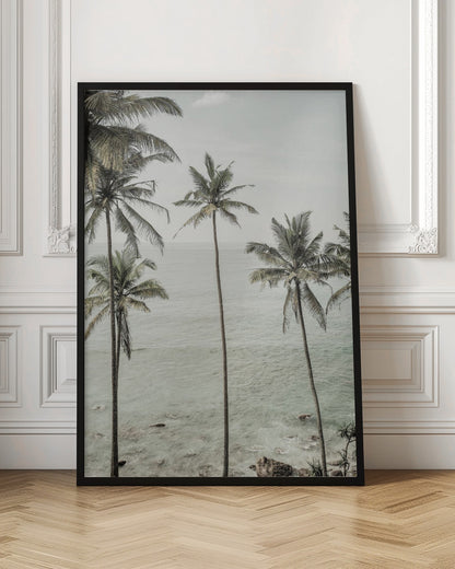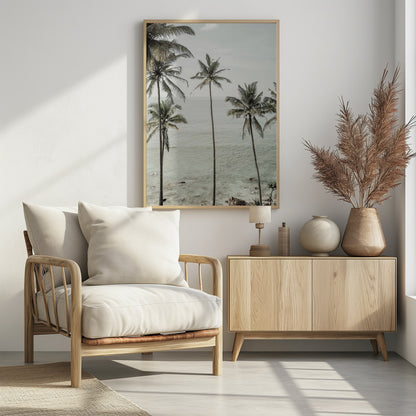 "Tropical Dreams" by Shot by Clint captures the ultimate feeling of relaxation and peace. This stunning poster showcases a serene tropical beach with swaying palm trees under a clear blue sky, where the ocean meets the horizon in perfect harmony. It's a visual escape to an idyllic vacation.