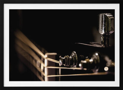 This captivating poster, 'vibrations', created by Flavio Bertazzi, captures the essence of musical vibrations. Through an abstract interpretation of guitar strings against a dark background, the blurred, playful colors create a sense of movement and sound. A dynamic and artistic touch that is perfect for music lovers and modern interiors.