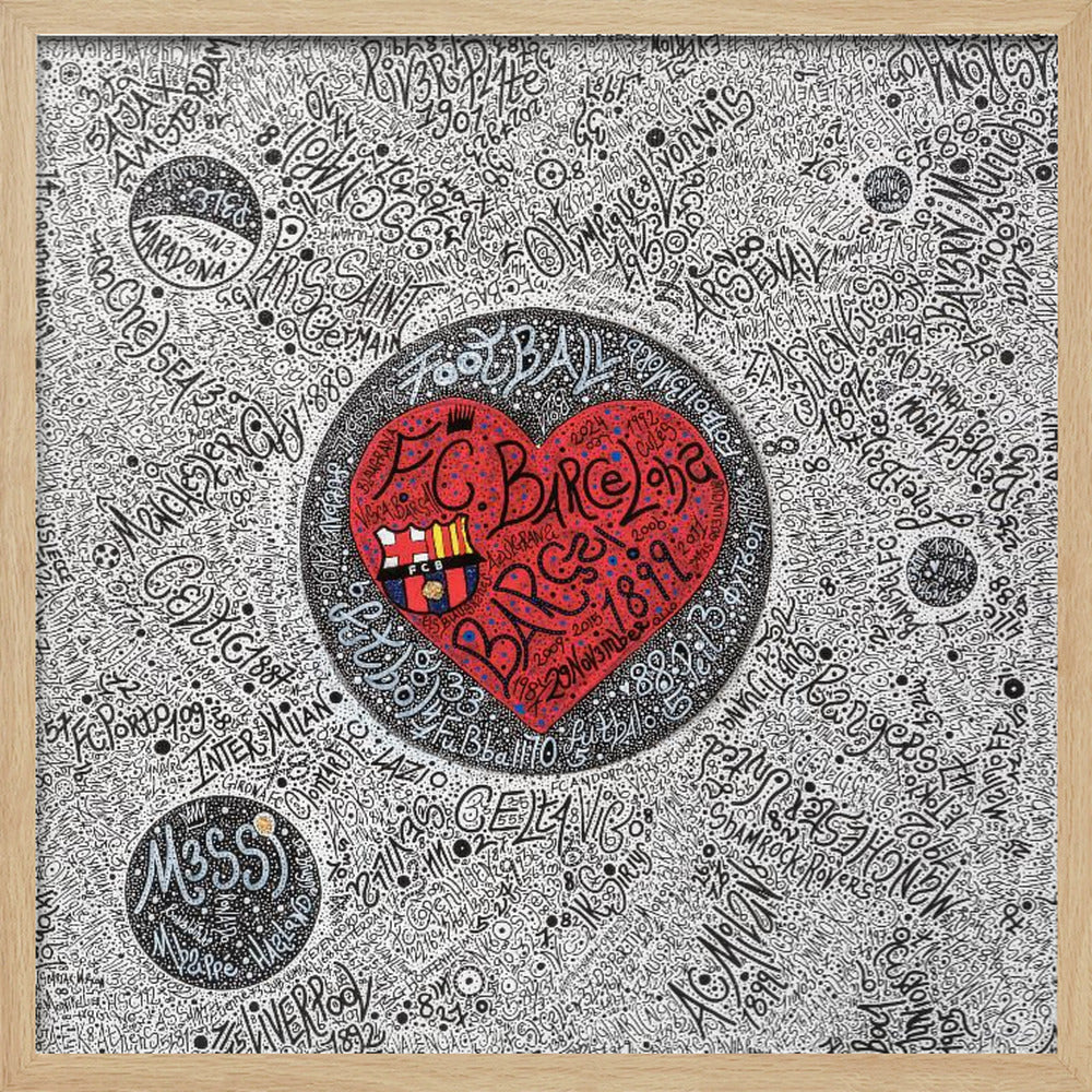 Denna unika poster "4 the Lov3 of Football" från konstnären Lorenzo A Roe är en stilren och färgstark hyllning till sporten vi älskar. Med sin distinkta graffitiinspirerade stil och dynamiska design fångar den essensen av fotboll och passionen kring den. Perfekt för fans av lag som AC Milan och Barcelona.