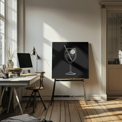 Denna stilrena poster, skapad av konstnären Andreas Magnusson, fångar essensen av en klassisk Gin & Tonic. Med dess enkla men kraftfulla svartvita kontraster och eleganta komposition blir den en sofistikerad detalj i alla rum. Perfekt för den som uppskattar minimalistisk estetik och dryckeskultur.