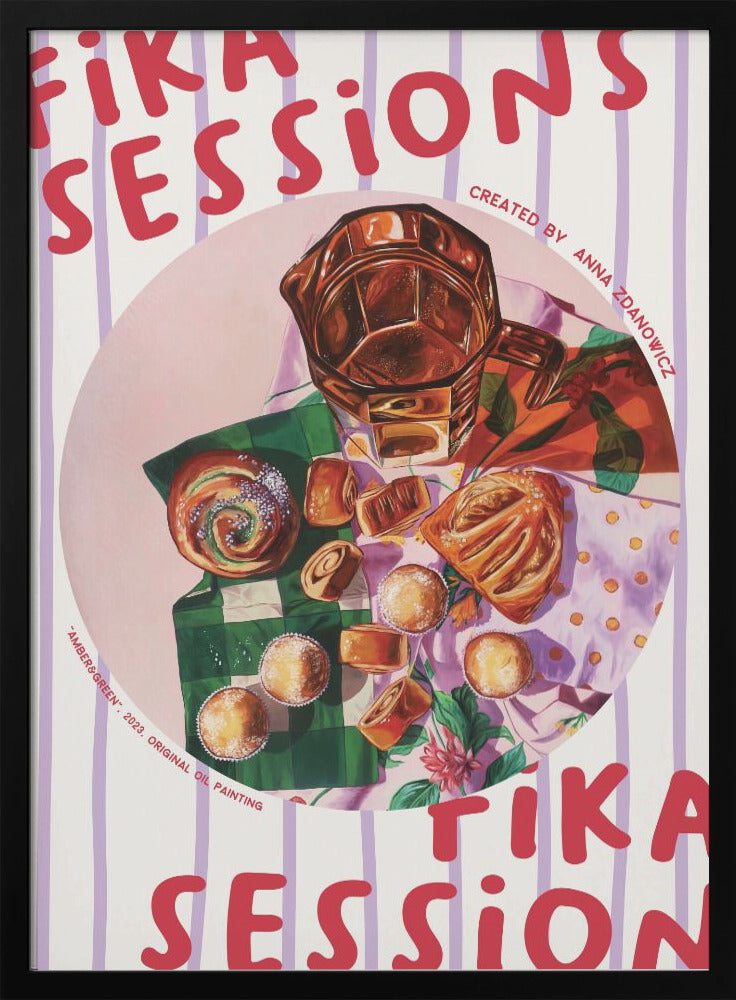 Anna Zdanowicz presenterar 'Amber and Green', en fängslande poster som omedelbart drar ögat till sig. Detta konstverk kombinerar elegansen hos rosor med en lekfull twist, där bullar och glas skapar en unik och inbjudande komposition. De varma bärnstensfärgade tonerna möter friskt grönt, vilket ger en balanserad och harmonisk känsla. Perfekt för att addera en touch av botanisk charm och fikamys till ditt hem.