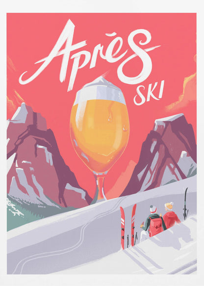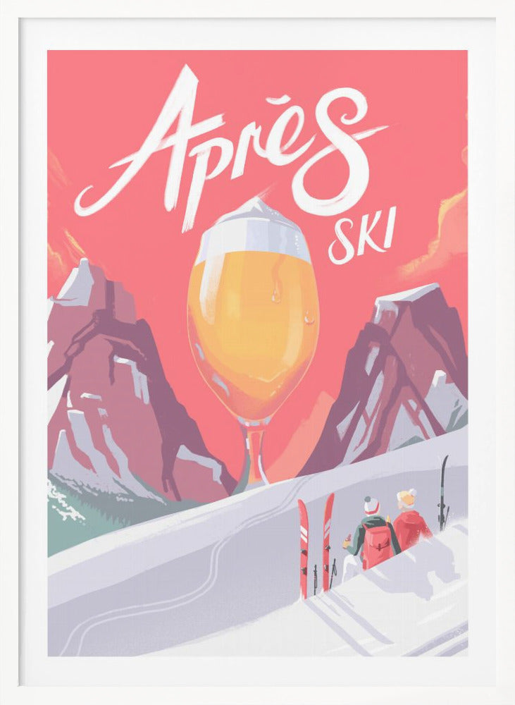 Låt dig förföras av Mark Harrisons charmiga "Apés Ski" poster, ett underbart konsttryck som fångar den glada stämningen efter en dag i skidbacken. Denna retro-inspirerade illustration med tecknade berg och skidåkare som njuter av en öl förmedlar en härlig nostalgi och tidlös design. Perfekt för att addera en lekfull touch till ditt hem.