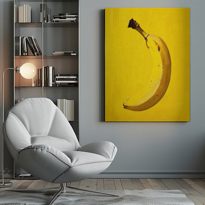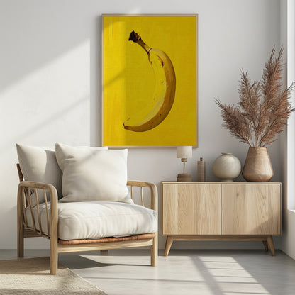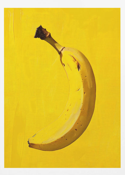 Denna livfulla poster, skapad av konstnären Andreas Magnusson, fångar essensen av en mogen banan med en konstnärlig och uttrycksfull penselföring. De rika gula tonerna och de mjuka övergångarna ger en nästan taktil känsla av frukten, vilket gör detta till ett unikt konstverk. En perfekt detalj för att addera färg och karaktär i köket eller matplatsen.