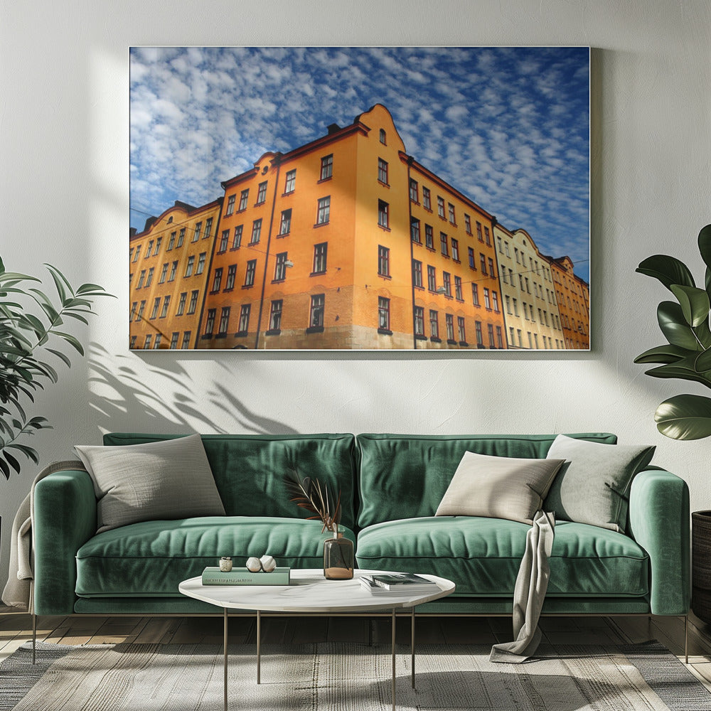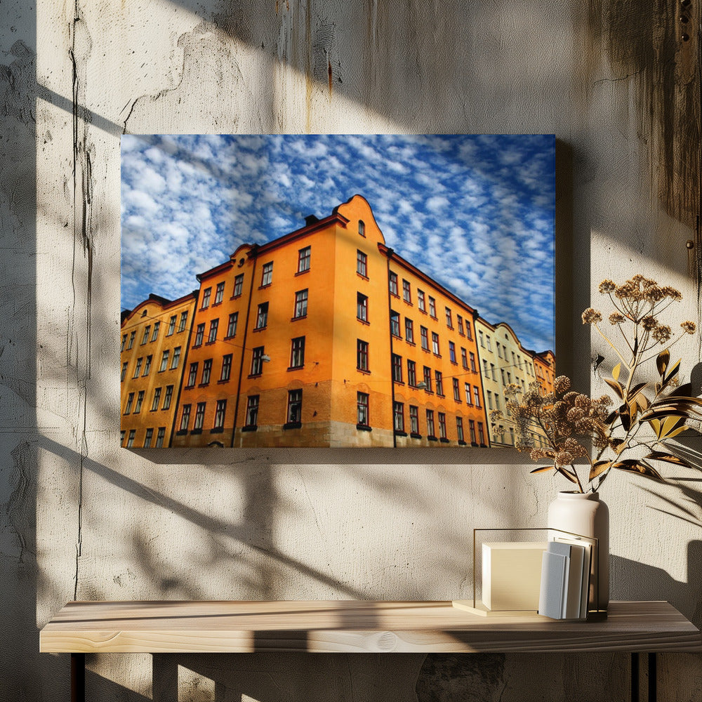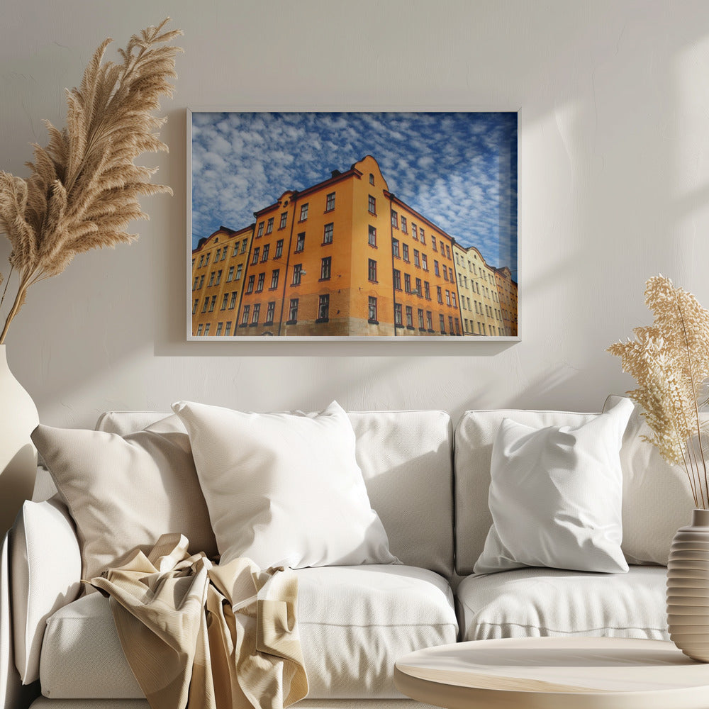 Denna fascinerande poster av Bror Johansson fångar en storslagen stadsvy med ett imponerande hus i centrum. Detaljerna i byggnadens fasad, tillsammans med de dramatiska molnen och den subtila symmetrin, skapar en urban känsla som både är modern och tidlös. En perfekt detalj för att lyfta ditt hem eller kontor.