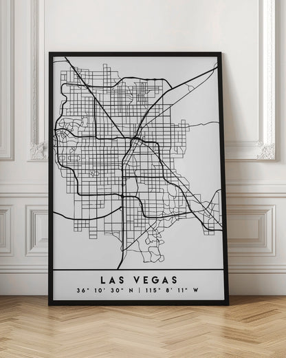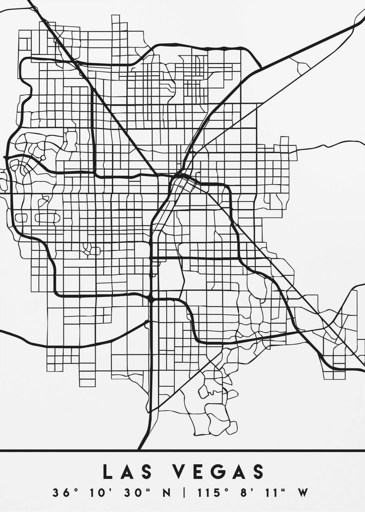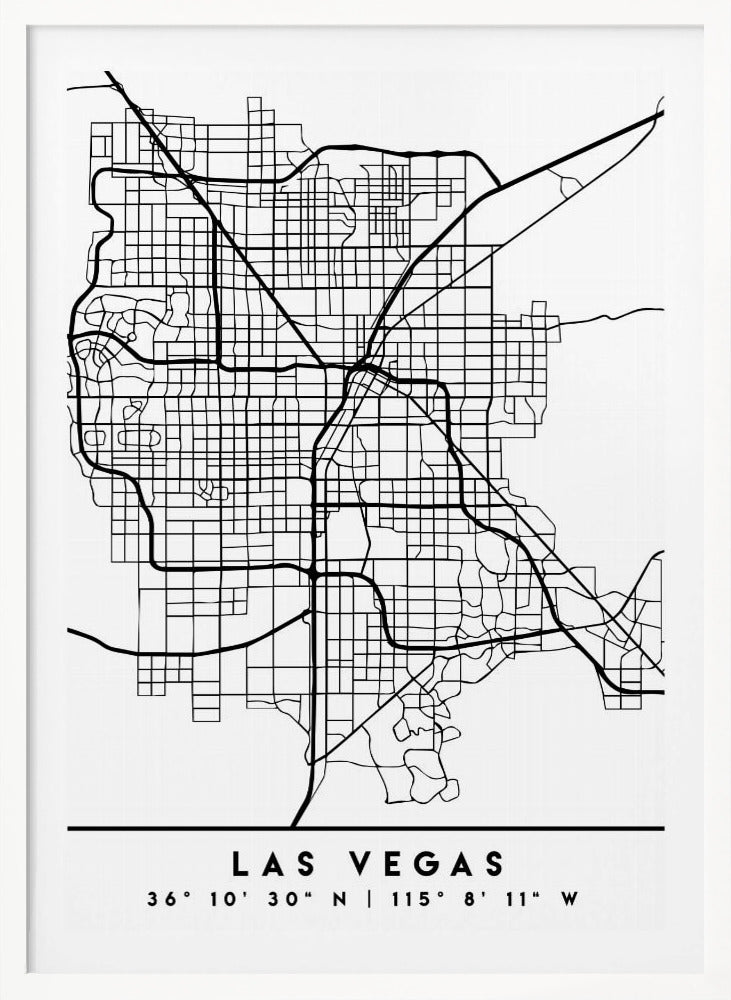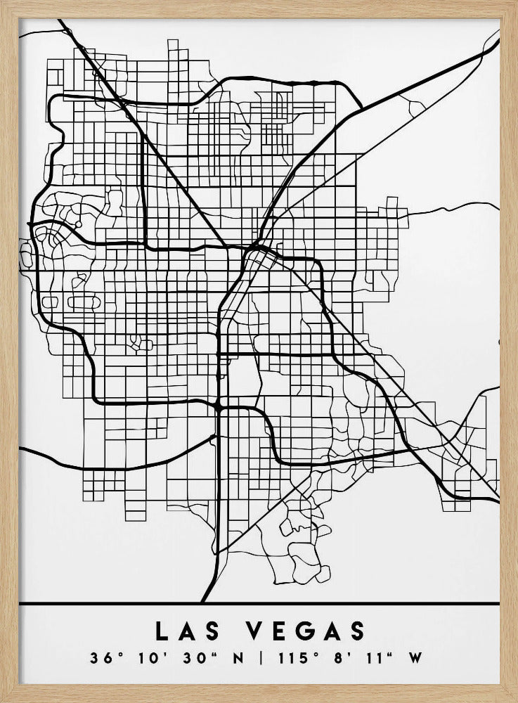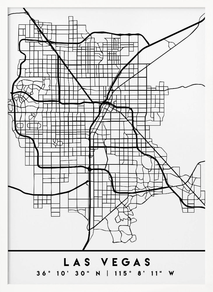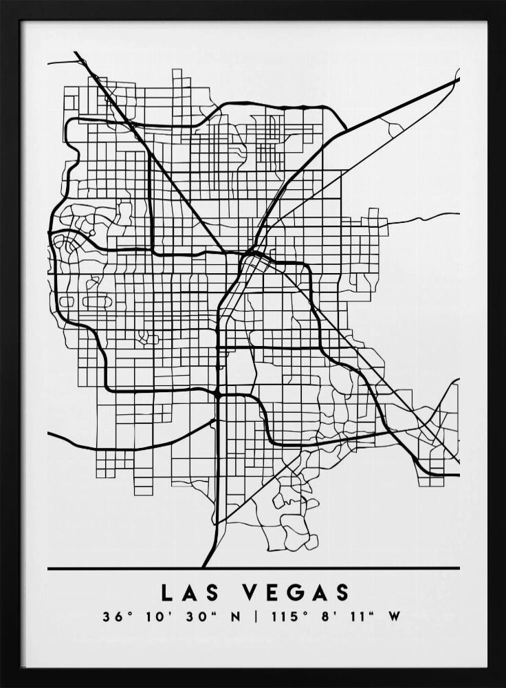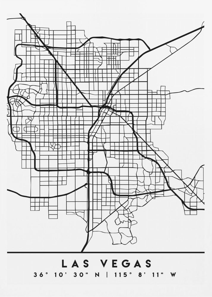 Upptäck den fängslande "Black Maps 38" av konstnären Emiliano Deificus, en dynamisk affisch som förvandlar en gatukarta över Las Vegas till ett geometriskt mästerverk. Detta konstverk fångar stadens pulserande energi genom grafiska linjer och arkitektoniska former, presenterat på en ljus bakgrund för maximal effekt. En perfekt detalj för den moderna inredningen.