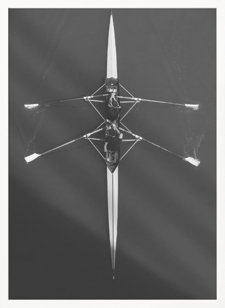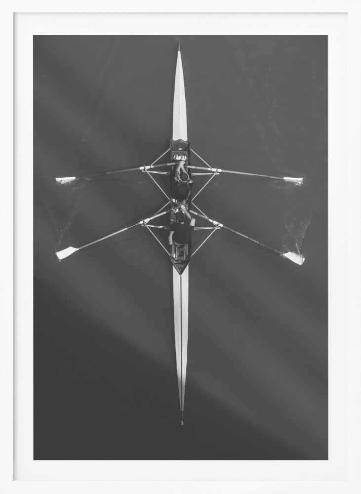 Upplev den fascinerande "Boat" postern av Bojan Dzodan, en konstnärlig tolkning som fångar ögonblicket från ett unikt fågelperspektiv. Detta svartvita fotografiska konstverk med drönarvy visar en roddbåt som stilla glider fram på vattnet, omgiven av ett lugnt och vackert landskap. Det grafiska uttrycket och de rena linjerna skapar en tidlös känsla som passar perfekt i det moderna hemmet.