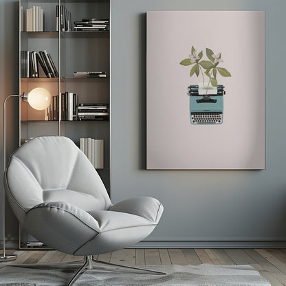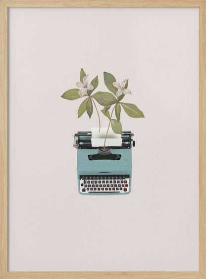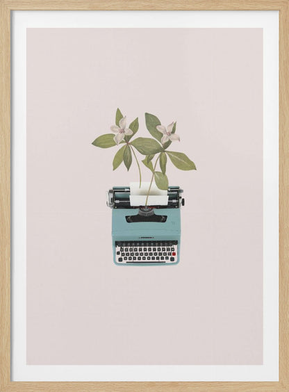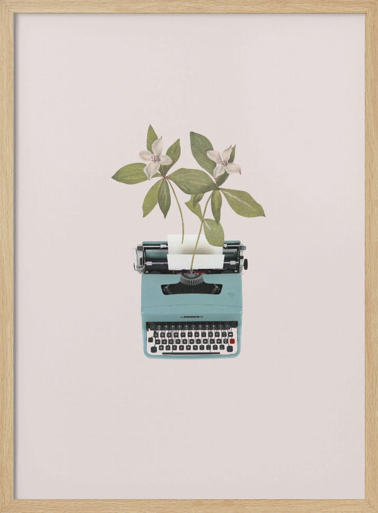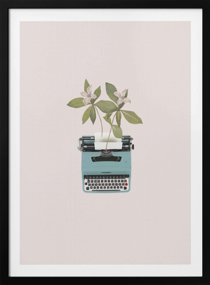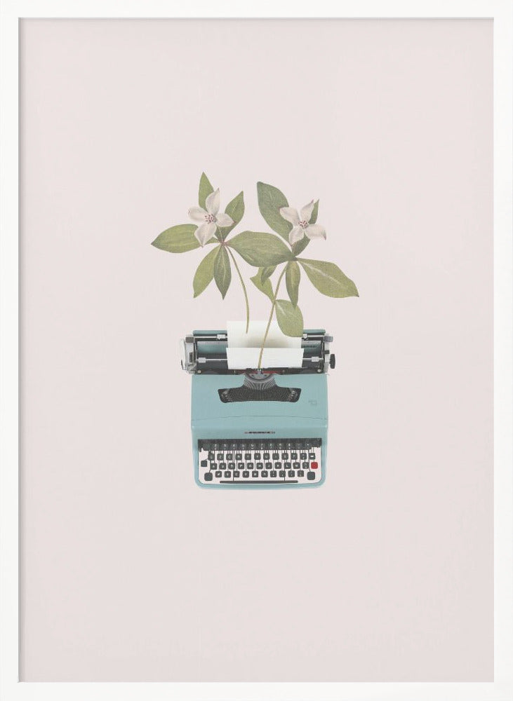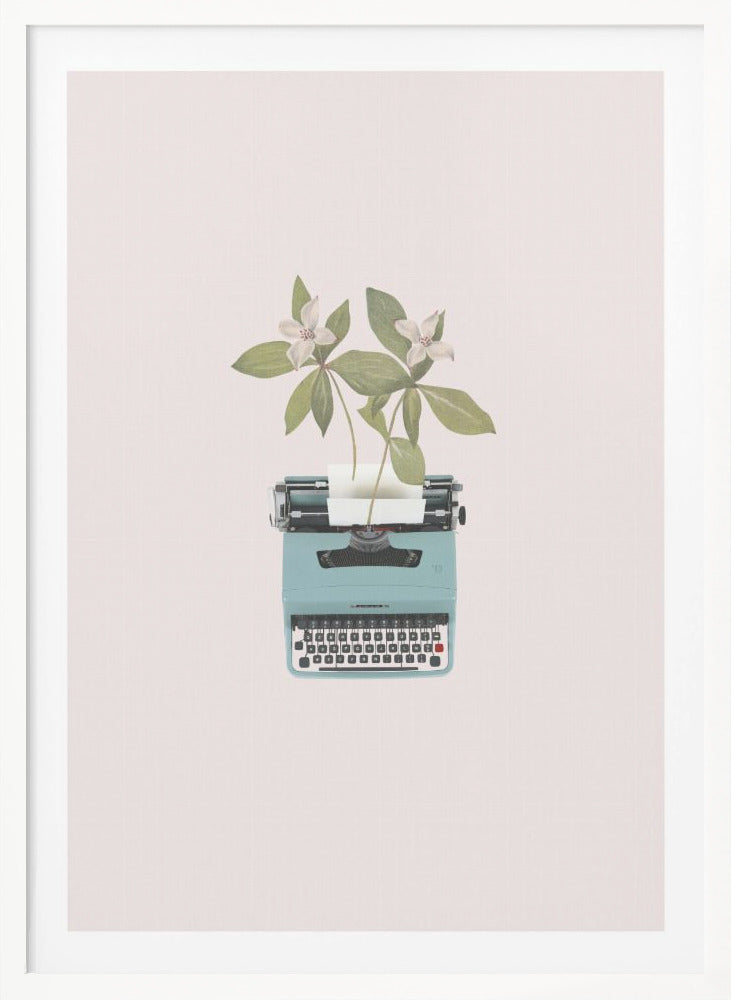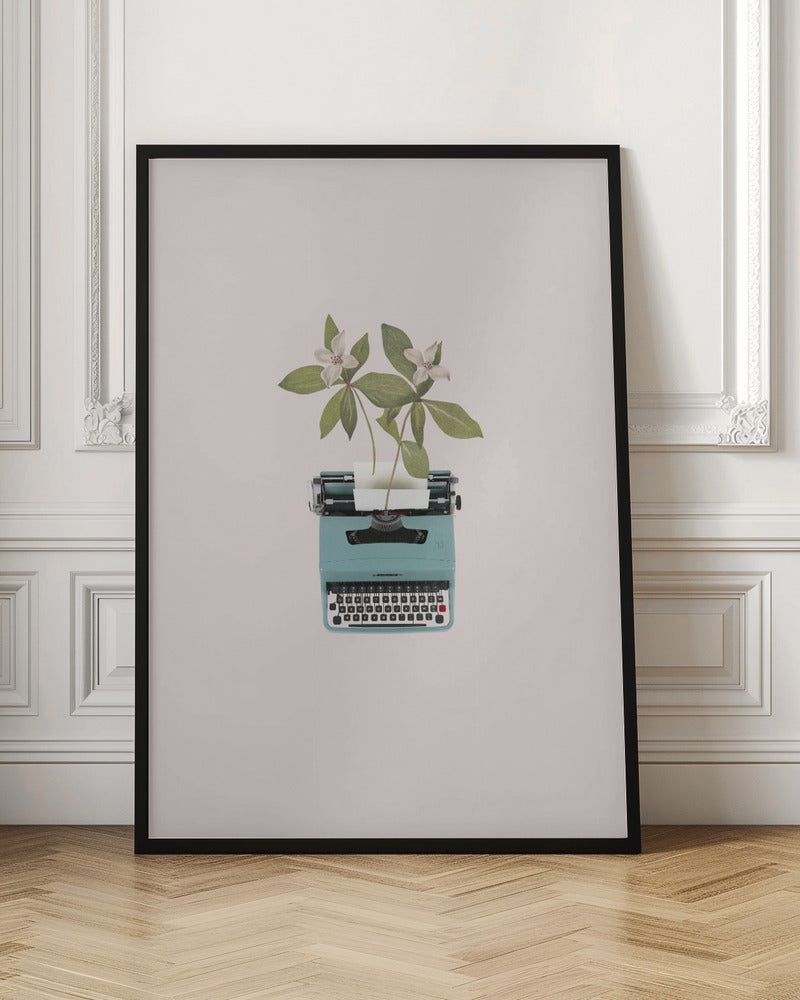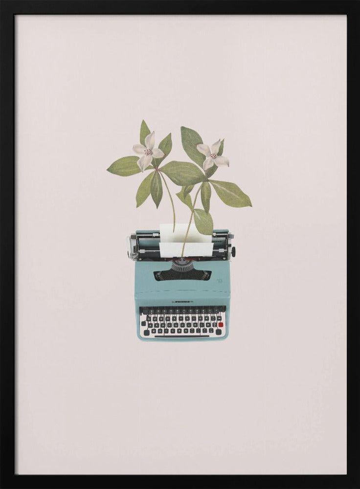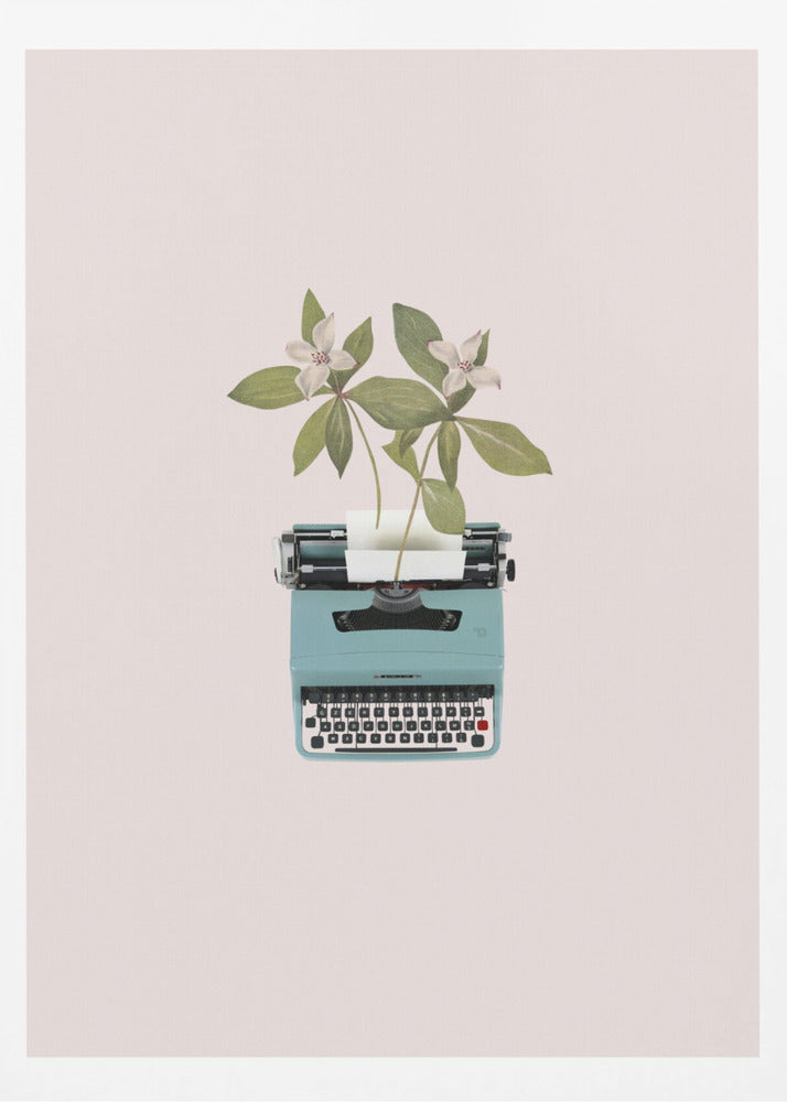 Låt dig inspireras av "Botanical Typewriter", en unik poster från Frida Floral Studio. Denna charmiga design förenar botanikens skönhet med en touch av vintage-nostalgi, där delikata blommor gror från en klassisk skrivmaskin. Ett konstfullt collage i mjuka rosa och blå toner som skapar en harmonisk och minimalistisk känsla, perfekt för att ge ditt hem en personlig och tidlös prägel.