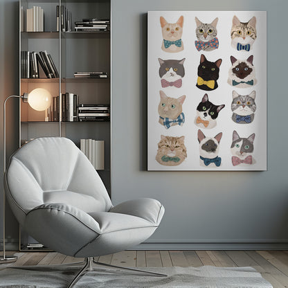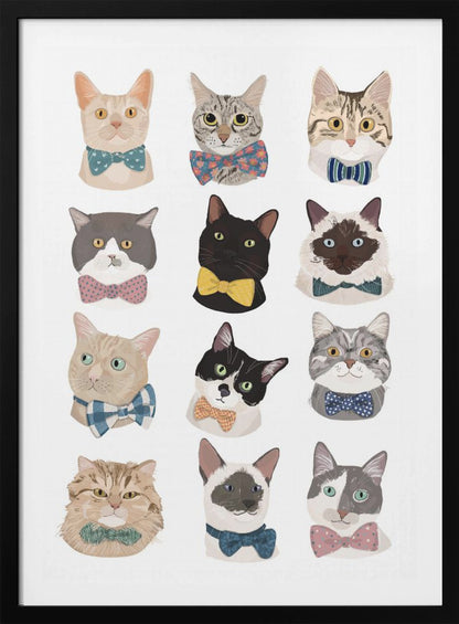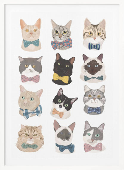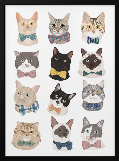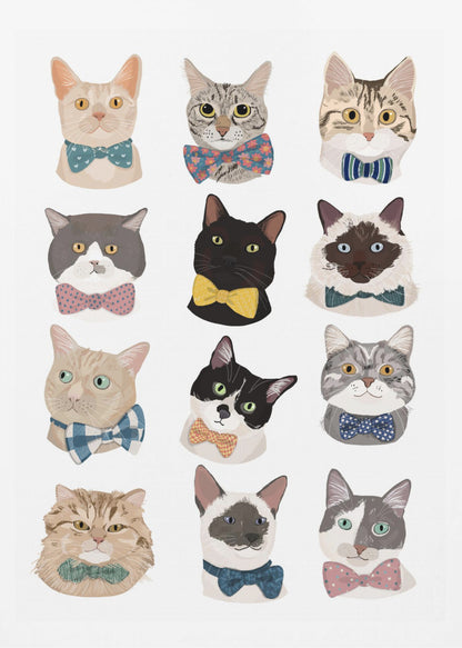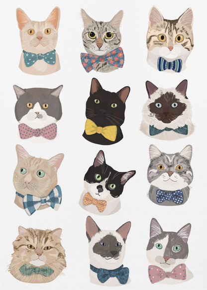 Möt "Cats In Bow Tie", en charmig poster skapad av den talangfulla konstnären Hanna Melin. Denna illustration föreställer en samling bedårande katter, var och en elegant prydd med en stilren fluga, mot en ljus och fräsch bakgrund. Perfekt för barnrummet eller för att addera en lekfull touch till vilket rum som helst. En riktig höjdpunkt för alla kattälskare!
