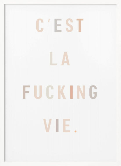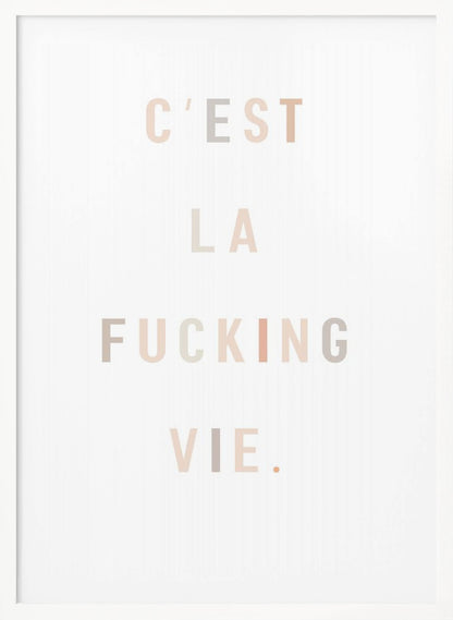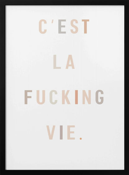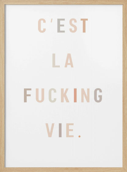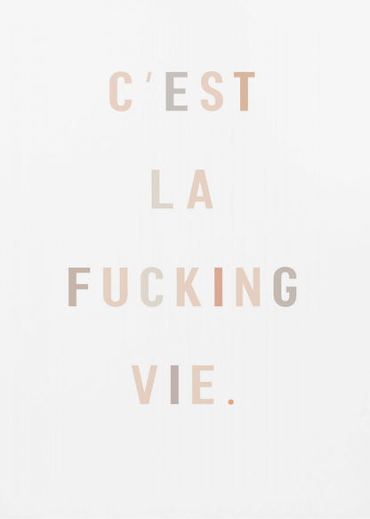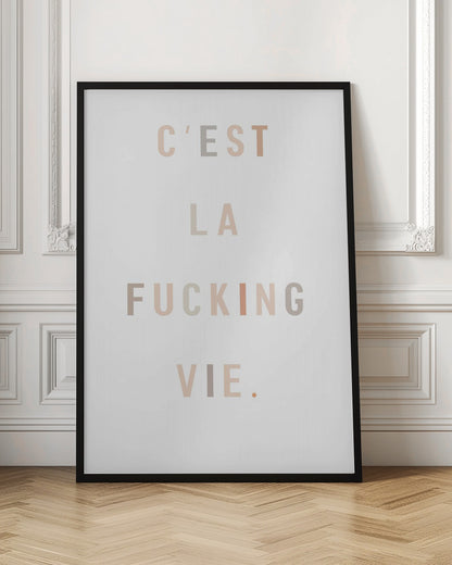 Upptäck den uttrycksfulla postern "C'est la fucking vie" från uplusmestudio, en affisch som med sin djärva franska text och varma beigefärgade bakgrund genast fångar ögat. Denna unika illustration kombinerar slående typografi med en minimalistisk estetik, perfekt för att addera en touch av fransk nonchalans och visdom till ditt hem. Den ljusa bakgrunden framhäver citatet på ett effektfullt sätt.