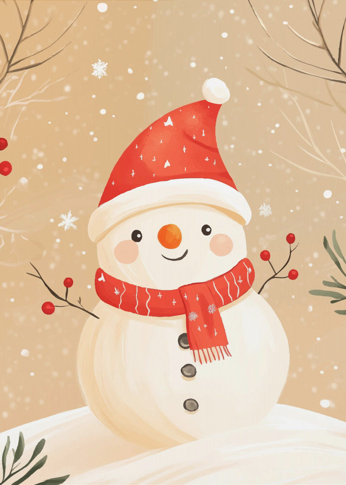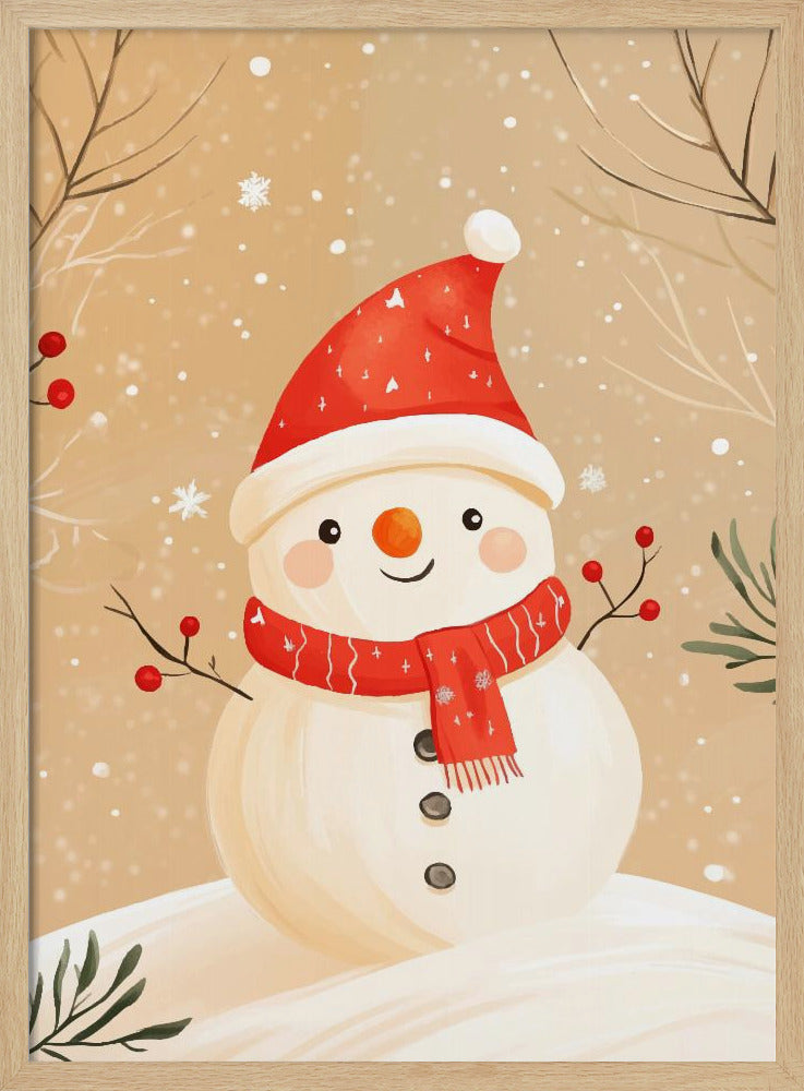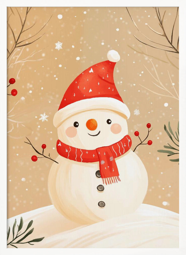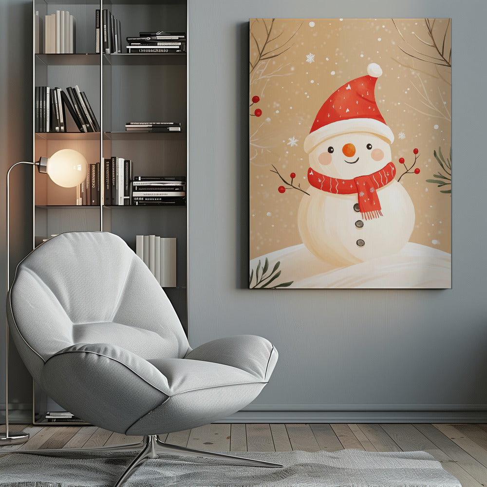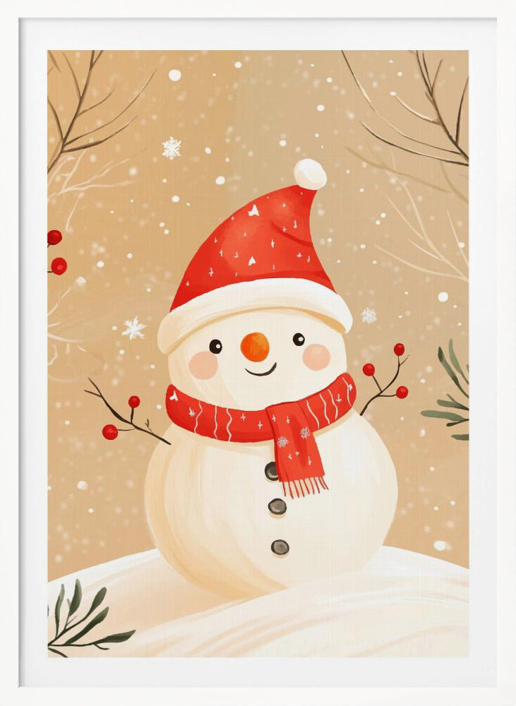 Denna charmiga affisch av Andreas Magnusson fångar vintermagin perfekt med en glad snögubbe, komplett med röd jultomteluva och en mysig halsduk. Snögubbens vänliga leende och de lekfulla detaljerna sprider en varm och inbjudande julkänsla. Ett idealiskt konstverk för att förgylla ditt hem under vintern och julhelgen, och skapa en festlig atmosfär för alla att njuta av.