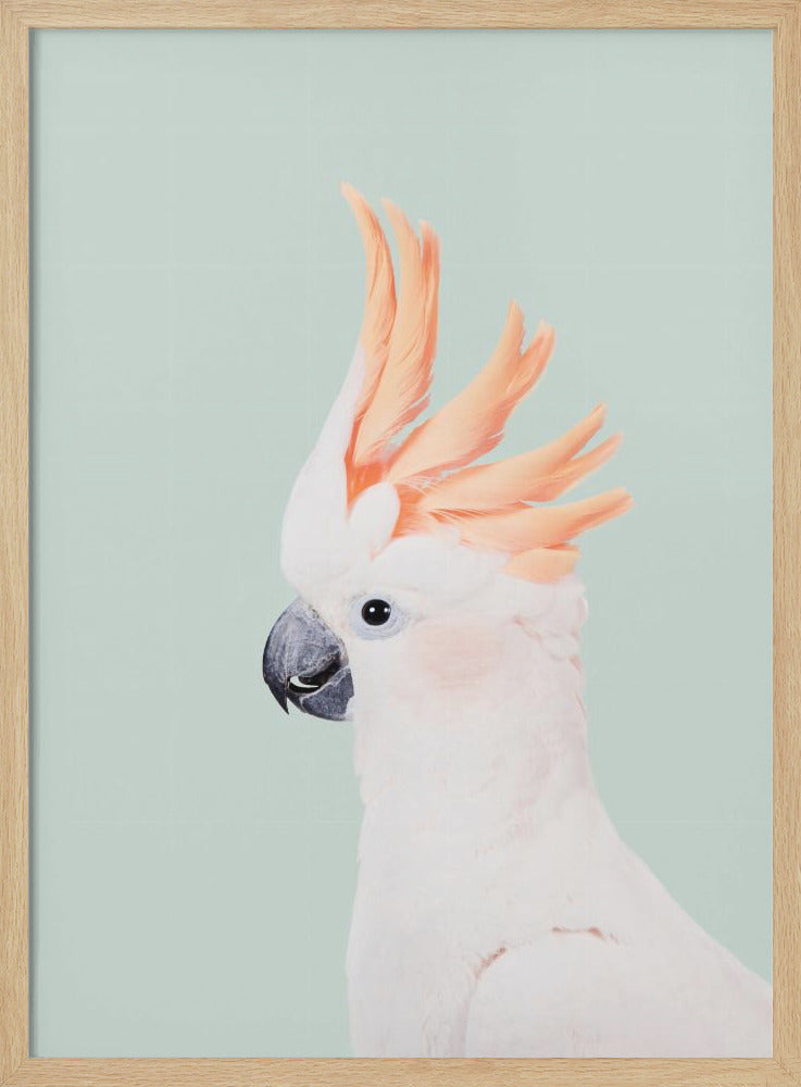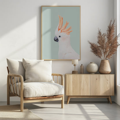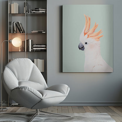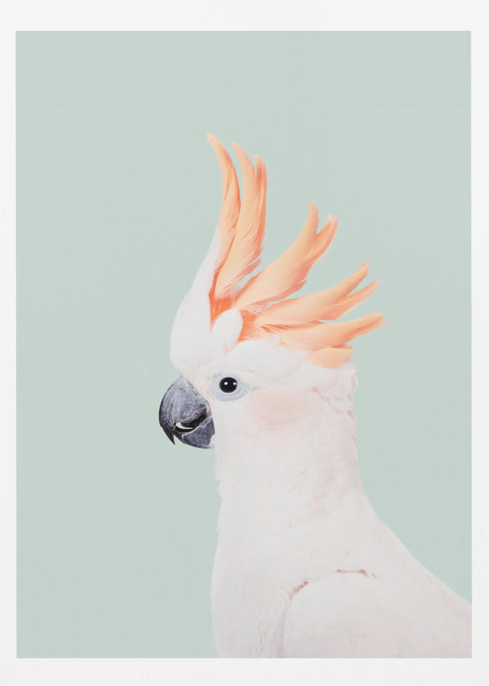 Konsten "Kakatua på Mint" av Kathrin Pienaar fångar den glada och lekfulla personligheten hos en svavelkrestad kakadua. Med en levande palett av rosa, orange och mintgrönt, utstrålar denna figurativa fågel ett smittande humör. Den söta fågelns uttrycksfulla ögon och humoristiska utseende gör den till en perfekt detalj för barnrummet eller för att sprida glädje i vilket hem som helst.
