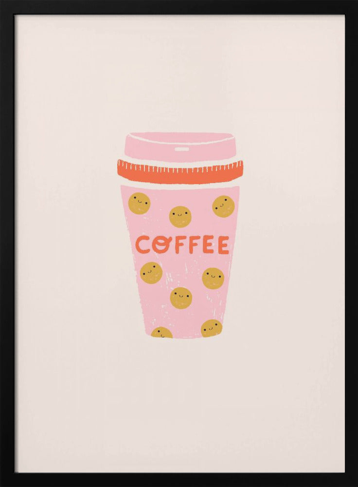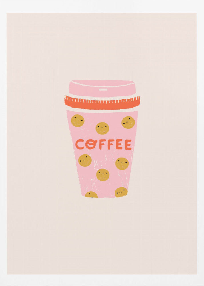Denna livfulla "Coffee" poster, skapad av konstnären Aislinn Simmonds, förvandlar vardagsglädjen med kaffe till ett konstverk. Med djärva färger och lekfulla former fångar den essensen av en perfekt kaffestund. De rosa och bruna tonerna smälter samman och skapar en varm och inbjudande känsla som passar perfekt i köket eller caféhörnan. En hyllning till kaffekoppen och dess lockande arom.