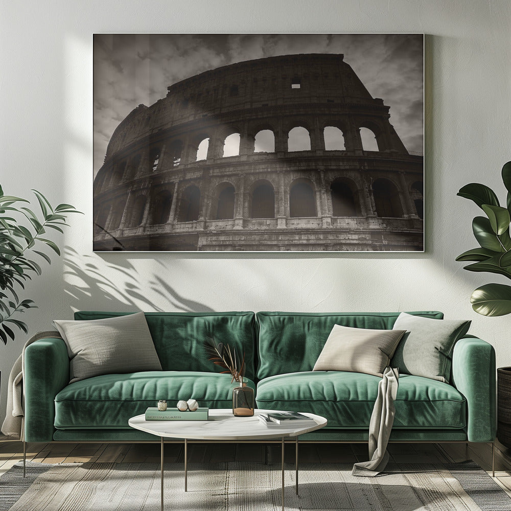 Stefan Nielsens imponerande konstverk fångar Colosseums storslagenhet i en tidlös svartvit estetik. Denna affisch eller art print förmedlar Roms historiska ikon med en kraftfull och dramatisk känsla. Med sin detaljrikedom och monokroma palett blir den en elegant inredningsdetalj som tillför både djup och karaktär till ditt hem.