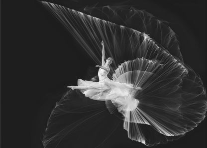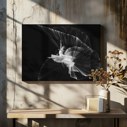 Fånga rörelsen och elegansen i denna slående poster av Handi Nugraha, 'Come...let dance'. Detta svartvita konstverk skildrar en dansare i ett kraftfullt och dynamiskt hopp, som om hon trotsar gravitationen i en explosion av ljus och skugga. Den kreativa redigeringen med lågmäld ton förstärker känslan av drama och rörelse, vilket gör den till ett unikt porträtt av dansens magi.