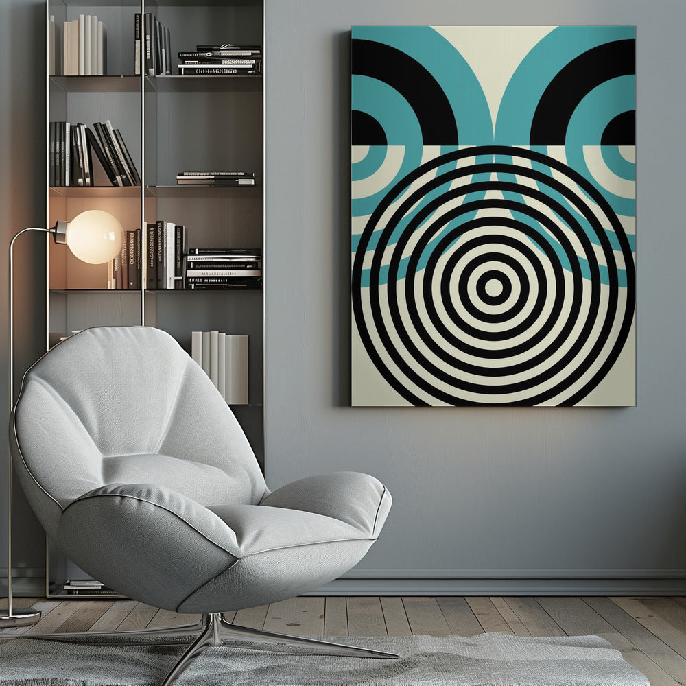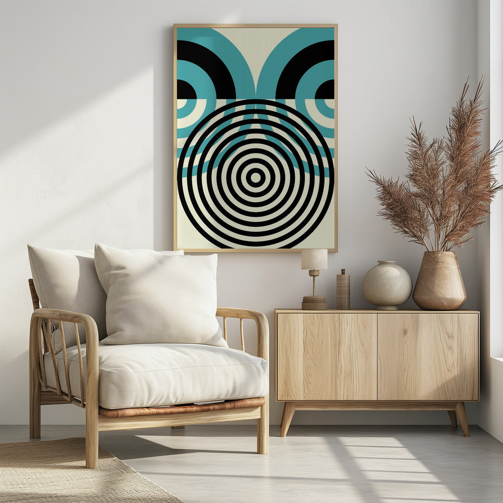 Låt dig inspireras av Petr Strnads Concept 78, en fängslande affisch som utforskar geometrins skönhet genom en modern abstraktion. Denna konstnärliga illustration, med sina överlappande cirklar och distinkta Bauhaus-känsla i svart och cyan, skapar ett dynamiskt och harmoniskt mönster. Perfekt för att ge varje rum en sofistikerad och konstnärlig touch.